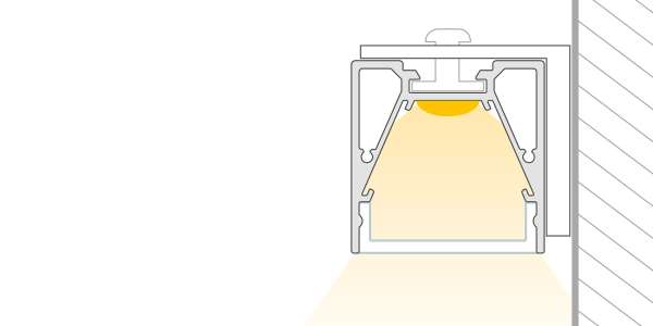 | CATania 30 Einlegerprofil, asymmetrisch 14°, zur Aufnahme der LEDlight flex Familie, kombinierbar mit GARliano Abdeckungen | steckbar | |  |